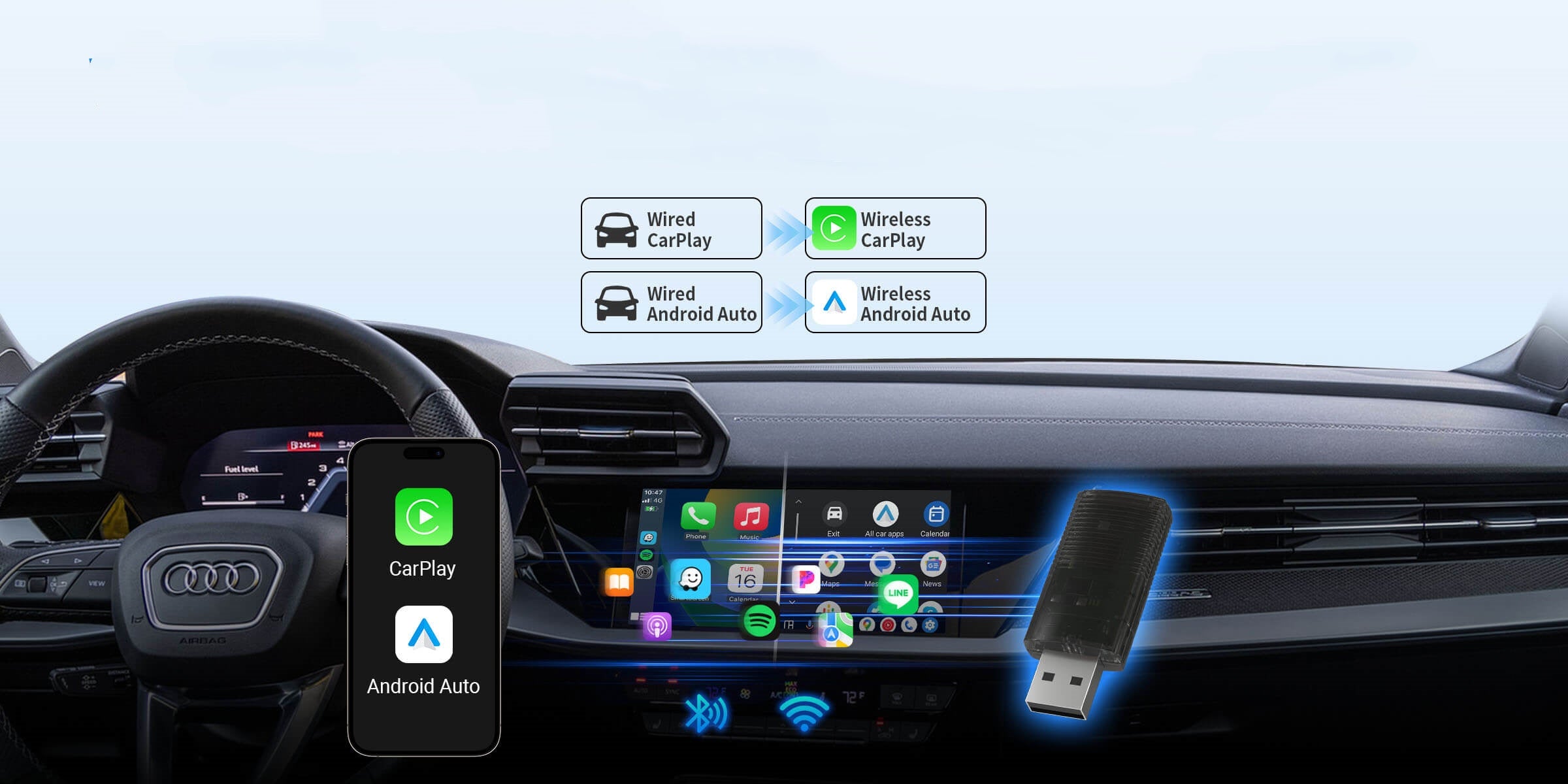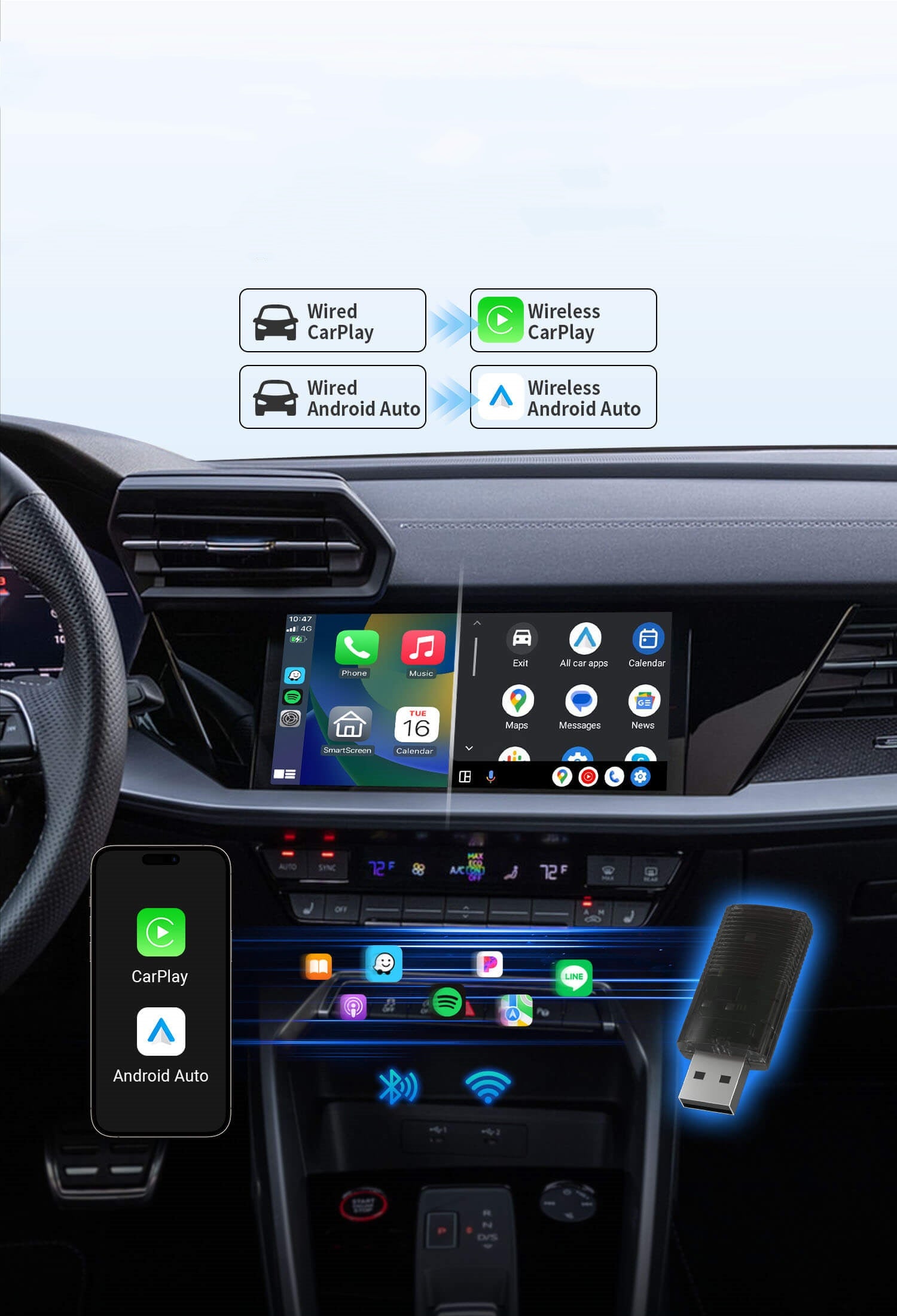 Mini adattatore wireless CarPlay/Android Auto 2 in 1