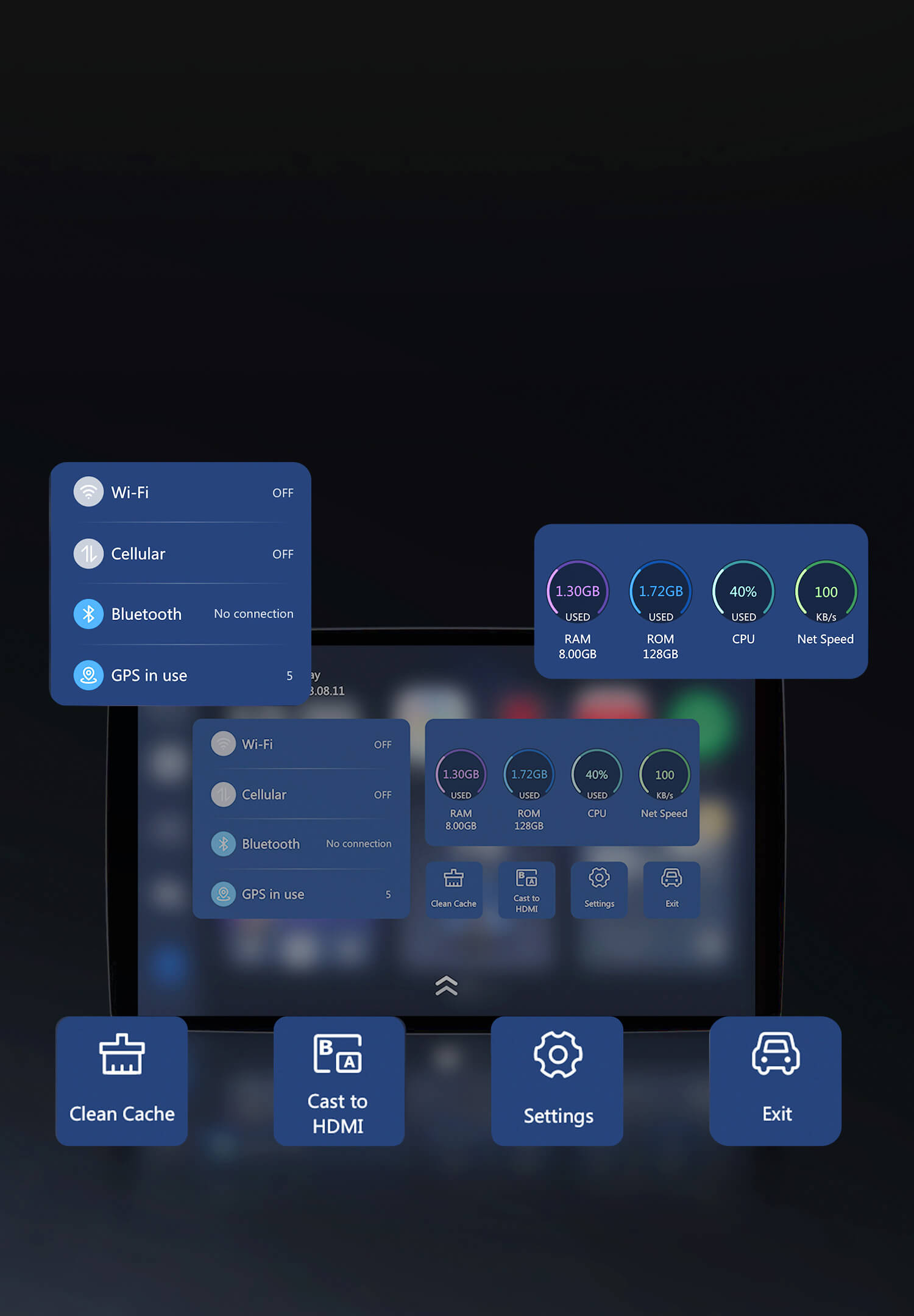 ✔Share the View: Project your dashboard directly onto the headrest monitor